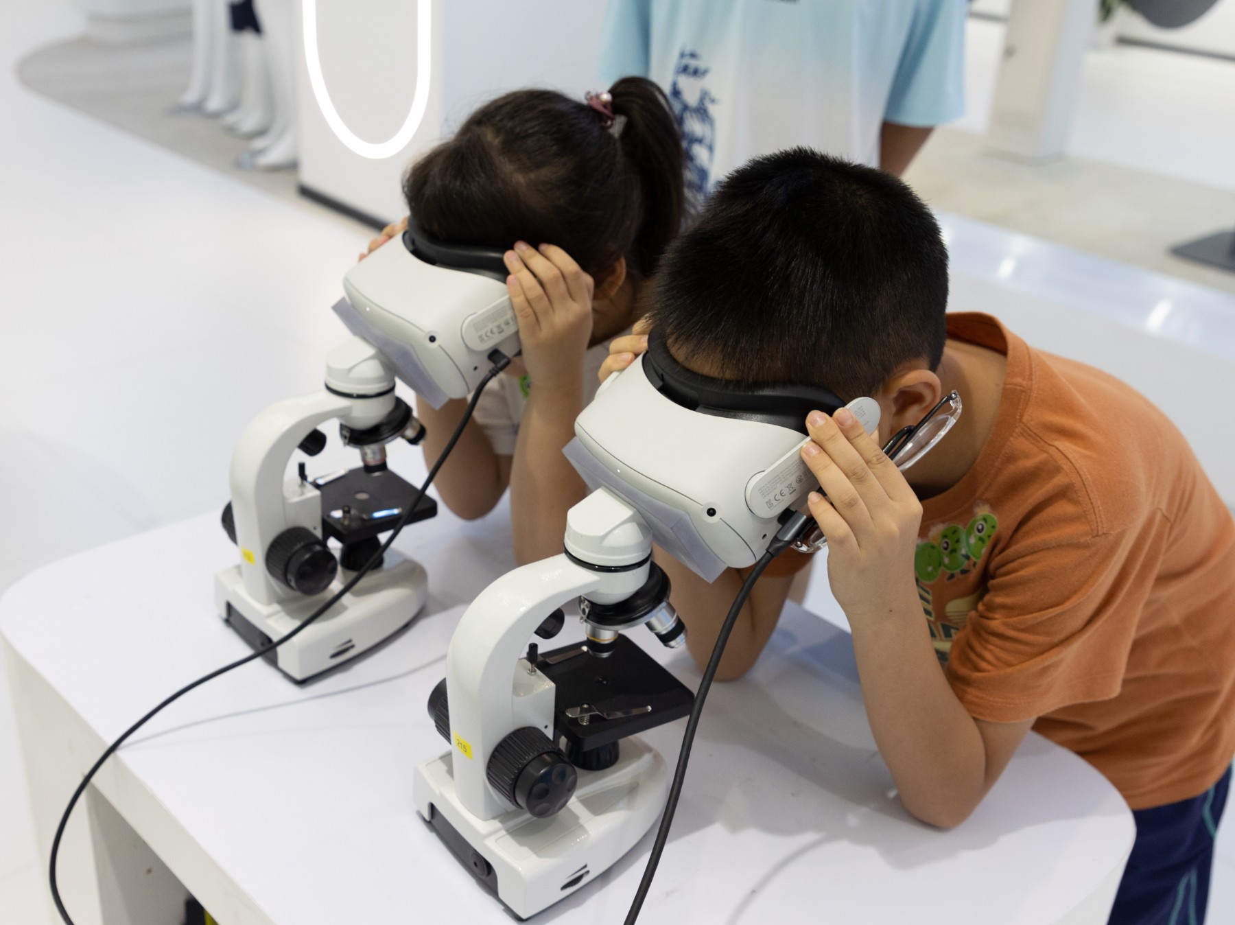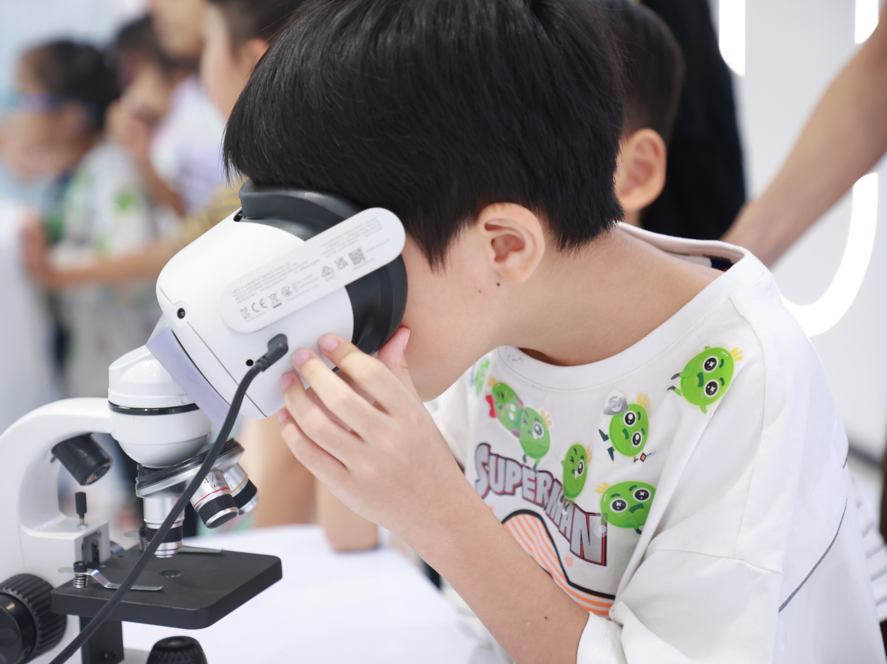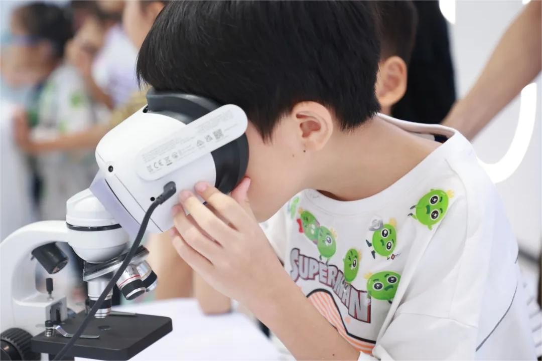 孩子们亲子动手操作显微镜