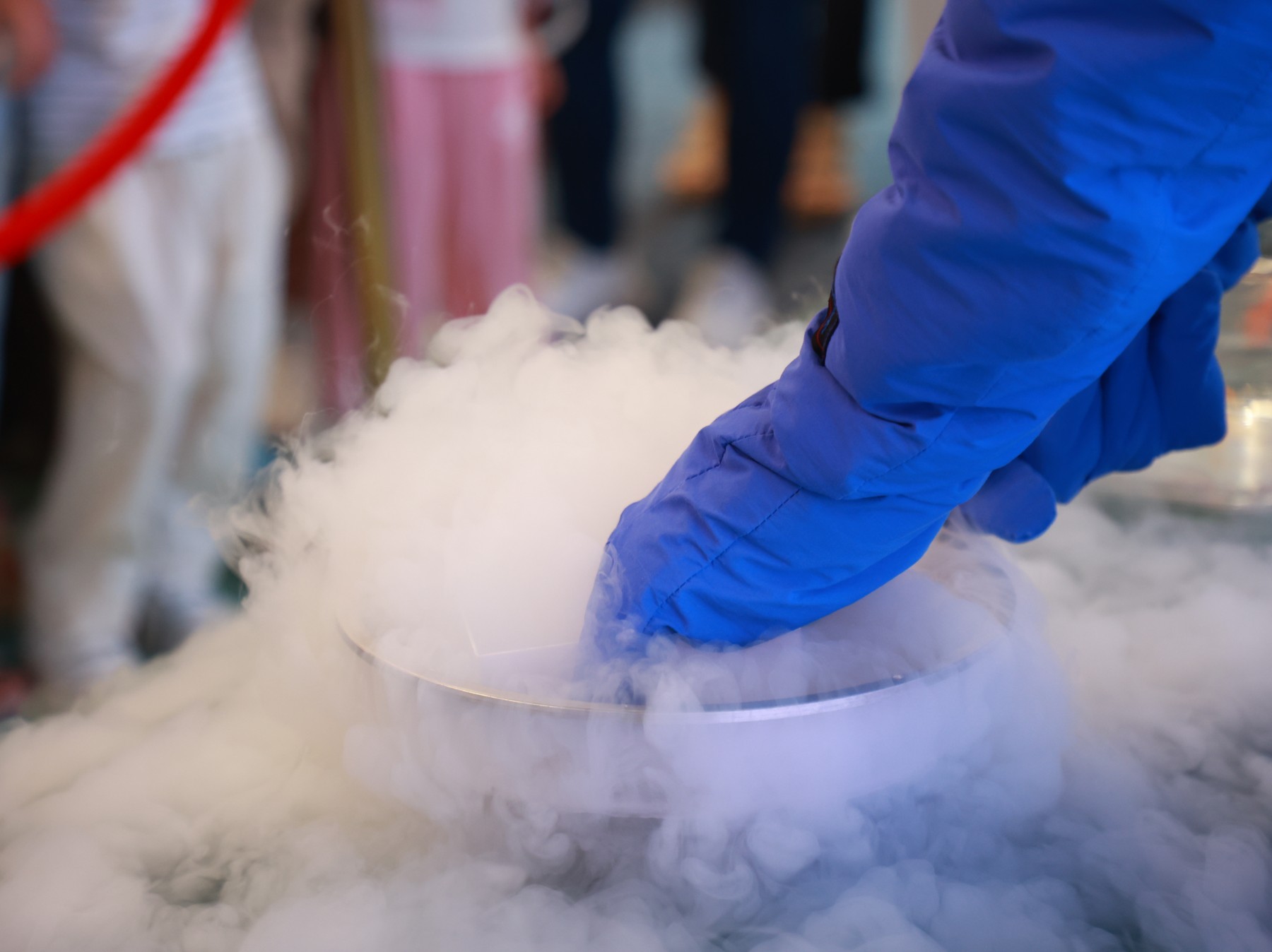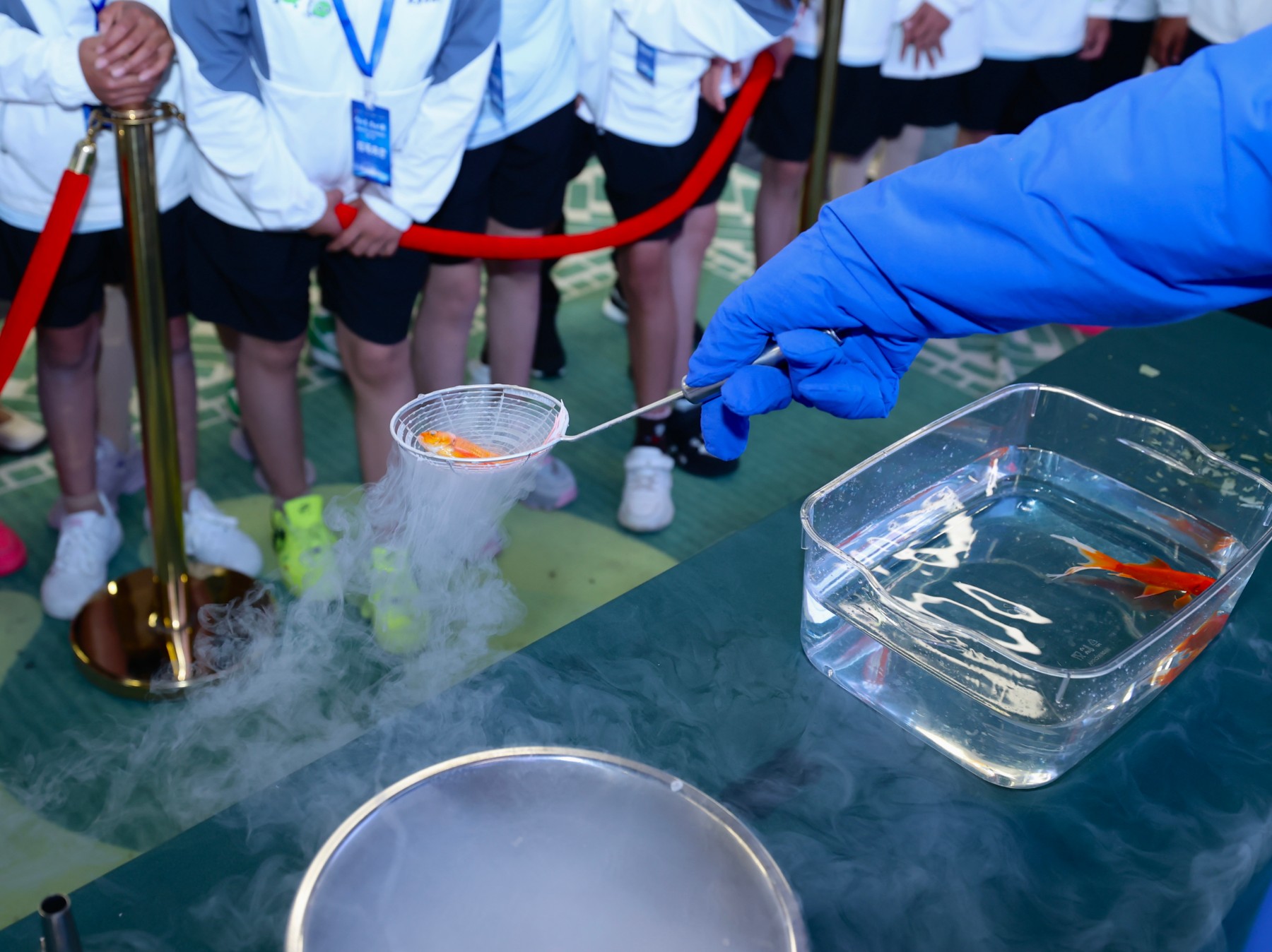 进行参观液氮冷冻小金鱼复苏实验