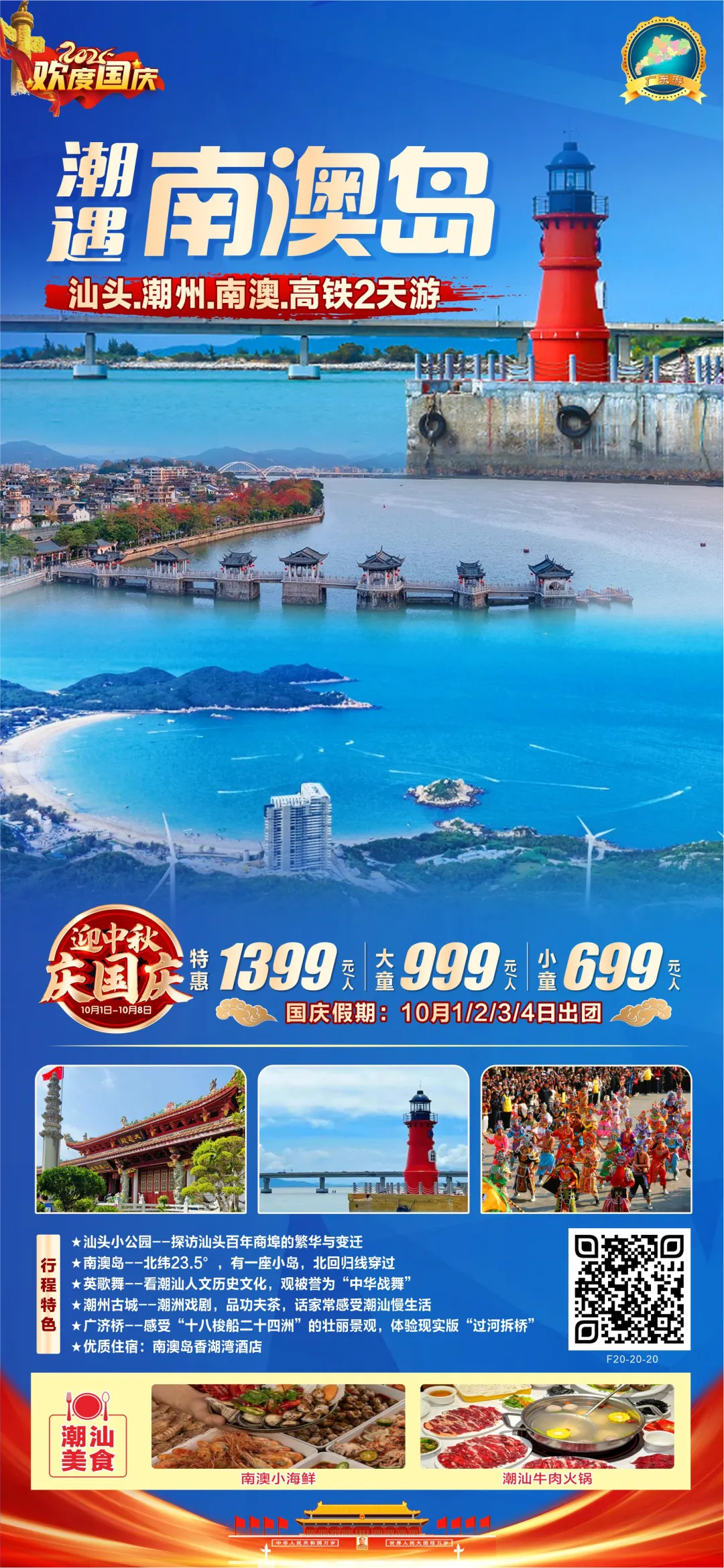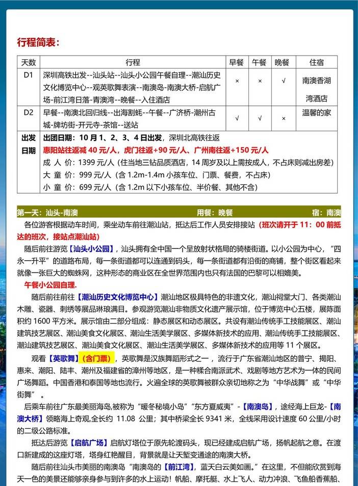 即将成团!国庆10.1-10.4每日出团【汕头.潮州.南澳高铁2天】汕头小公园、南澳岛、英歌舞、潮州古城、广济桥 [复制链接]