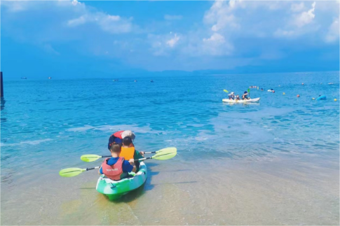 行程:出发—室内卡丁车—午餐—七星湾网红双体船出海—桔钓沙沙滩皮划艇—沙滩踏浪—晚餐—返程